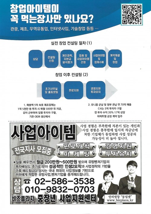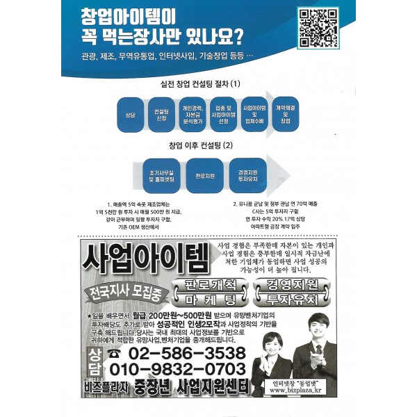 본인의 경력과 보유자금,희망업종을 메일로 보내주시면 유망사업을 수배하여소개해드립니다.csuk@nate.com 010-9832-0703